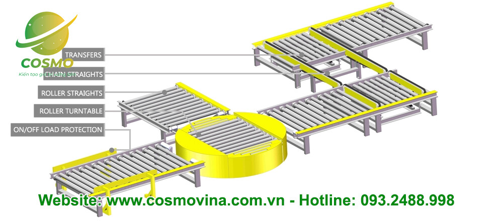 Review Dây chuyền vận chuyển con lăn pallet điện