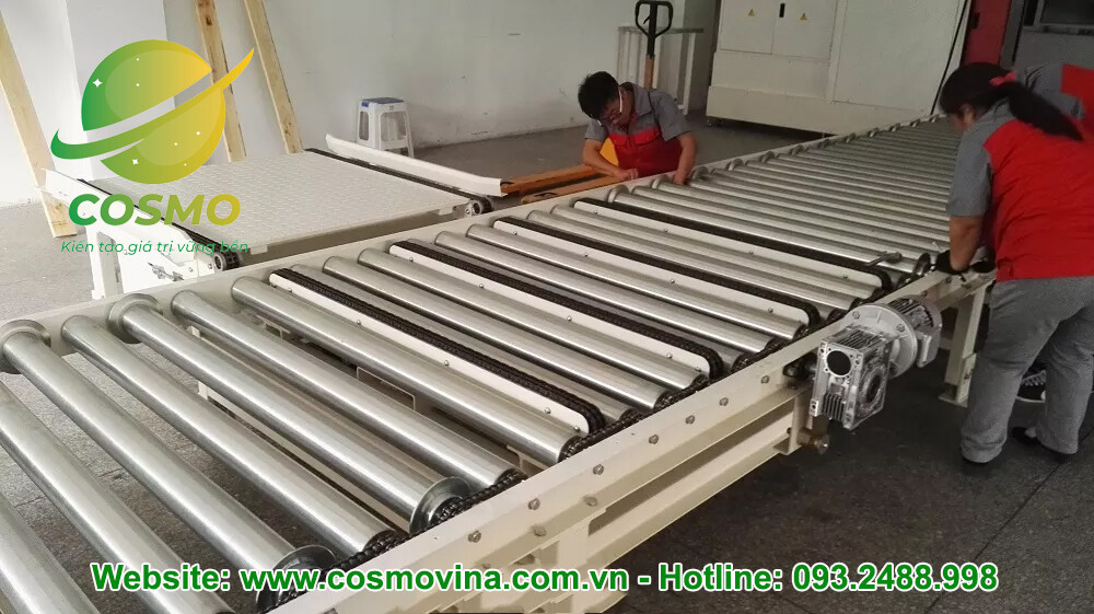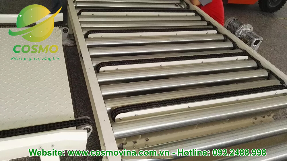 Review Hệ thống băng tải chuyển pallet có động cơ